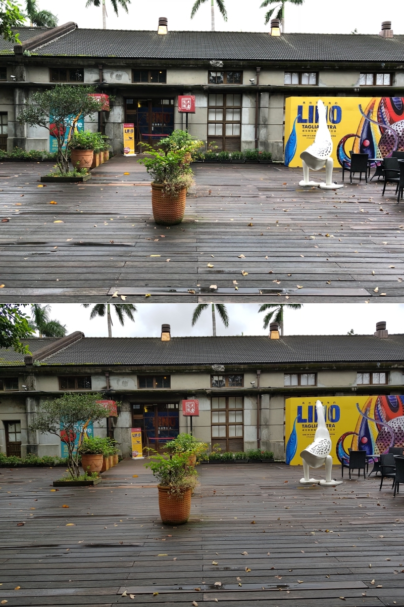 這畫面和上一張一樣,先看一下天空的烏雲,再看一下右邊那支白色的裝置藝術(應該是雞?),你會發現又是同樣的問題,亮部的部份 iPhone X 都是過嚗的,特別是裝置藝術上的紋路,Note8 是完整保留的。