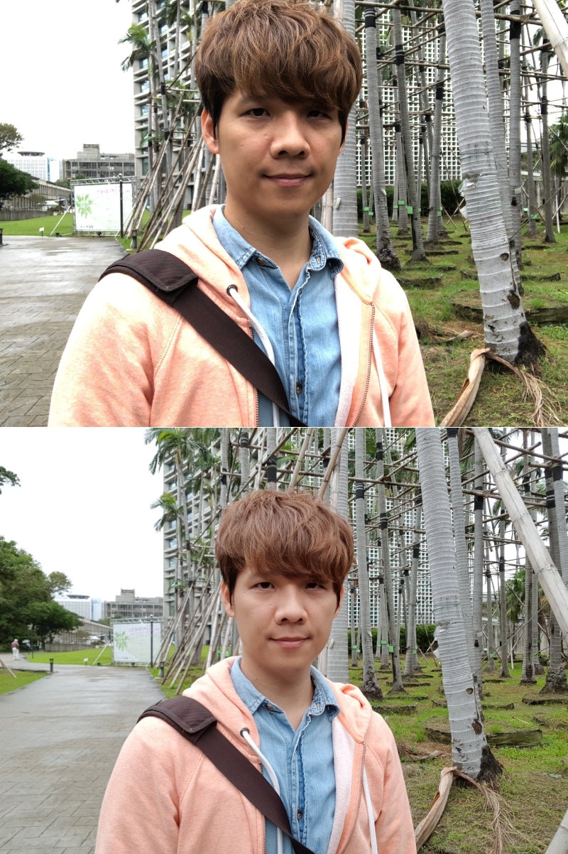 接下來我們先來看一下前置鏡頭的部份,阿湯嘗試微逆光的方向拍攝,在鏡頭的部份很顯的可以看出 Note8 更廣角,至於人像的呈現應該很明顯的看出差異,Note8 在自拍人像的部份相較於 iPhone X 更加討喜,而且在 iPhone X 的照片上,注意看阿湯的外套,非常多過嚗點,前置鏡頭可以說是有點槽糕。