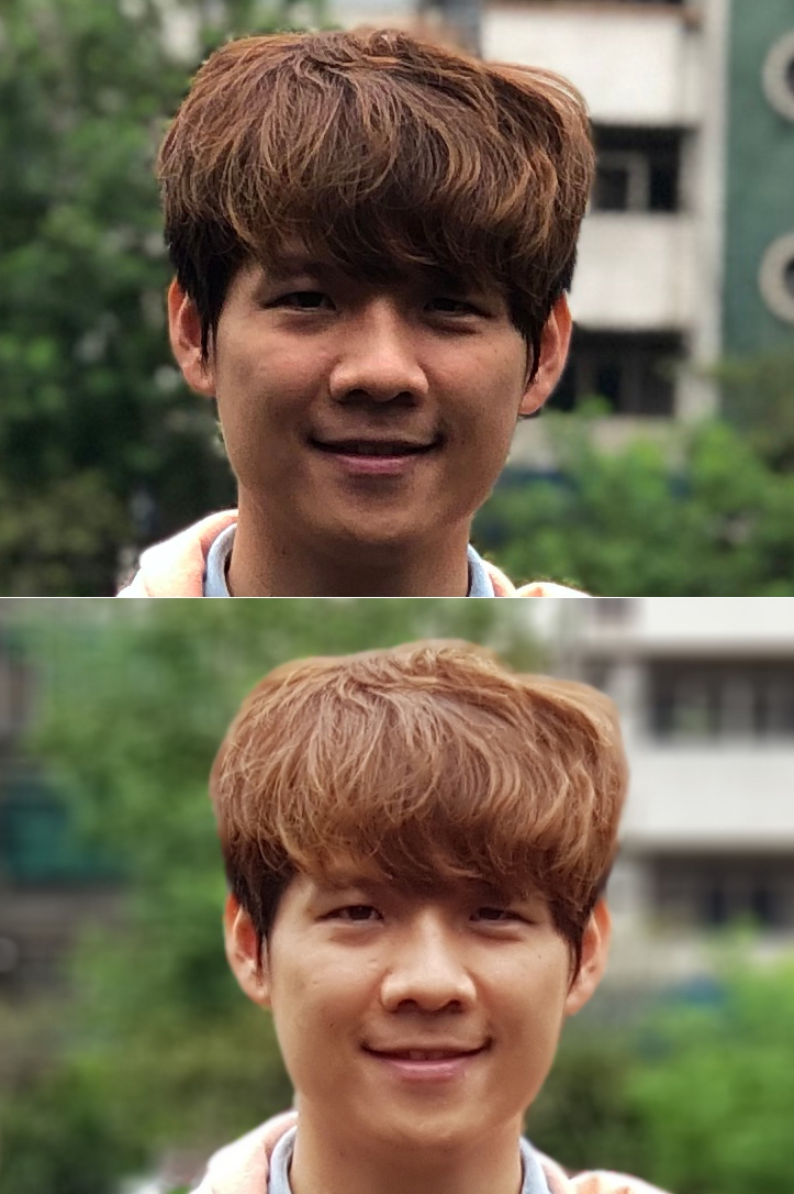 阿湯跟大家說一下,目前各家旗艦機型如果有搭配人像或景深模式的話,基本上都是透過軟體運算後製造出景深感,所以要測試最好的方式就是拍人像後放大看人像邊緣,特別是頭髮的部份,在 100% 放大原圖下看,iPhone X 的頭髮邊緣很明顯的沒有處理的很好,臉的邊緣也同樣看的到,另外臉的雜訊也頗多的;而 Note8 在人像景深拍攝的部份,邊緣處理的相對較好且更自然一些,重點是照片雜訊明顯少很多,色澤也更討喜。