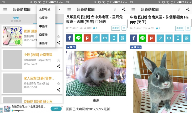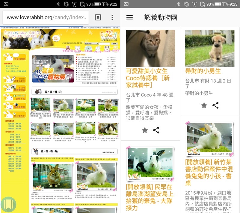 這款 APP 目前只有 Android 版,使用非常簡單,開啟後選擇要找貓咪、狗狗還是兔兔,像兔兔是分愛兔協會跟海綾月,點進去會連到官網查看詳情。
