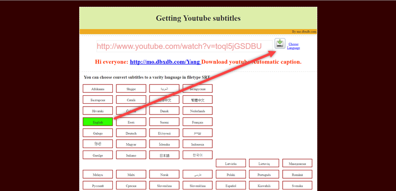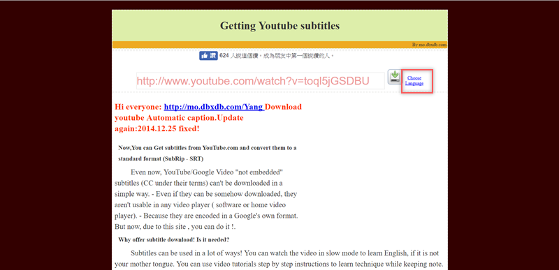 進到網站後在空白列貼上影片網址,先點右邊「Choose Language」。