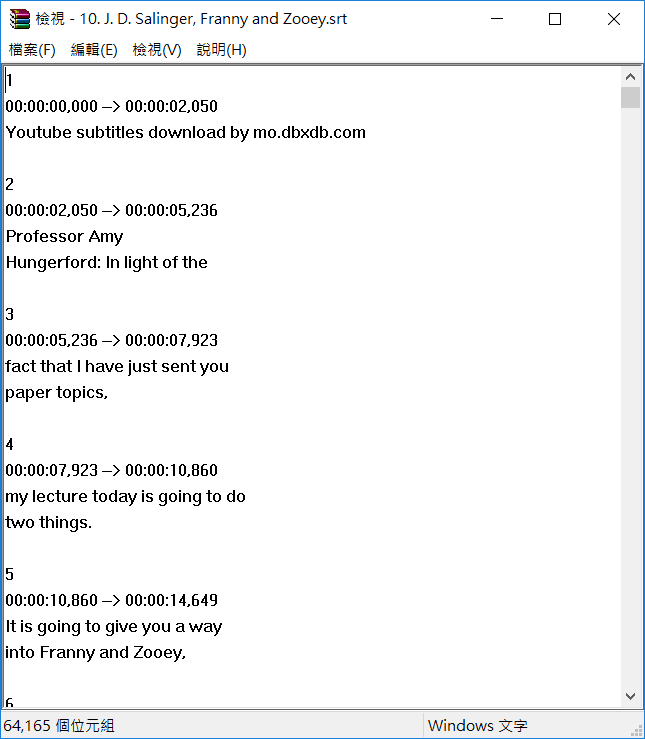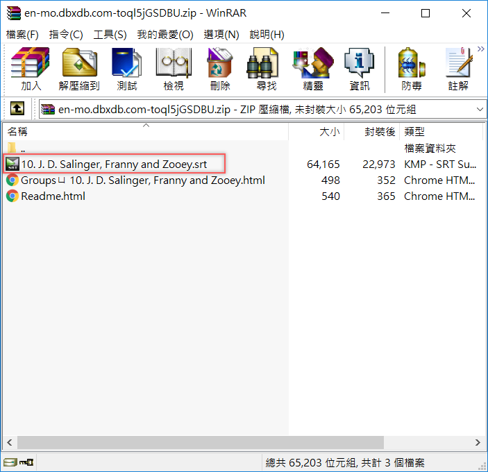 開啟下載的壓縮檔,其中副檔名為「.srt」的檔案就是字幕,預設是以記事本開啟,如果讀到其他程式就要另外設定。