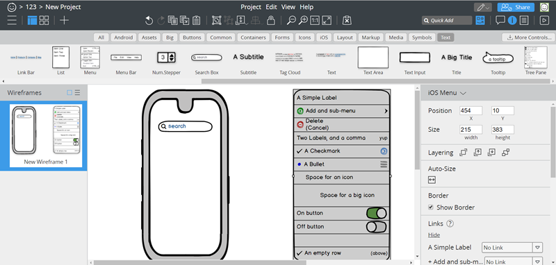 以類似草圖方式來添加設計,所有元件也是從上方拖進去後再更改細節,包括文本、標籤、菜單等等,蠻容易上手。