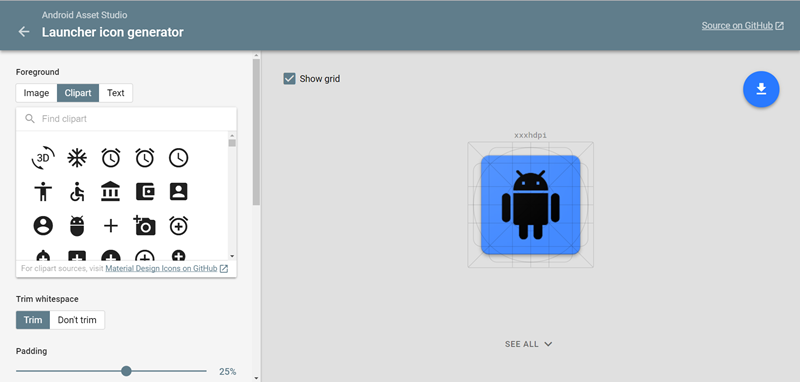 最後來看這個專門設計 Icon 的網站,雖然標榜供 Android 使用,但做出來的成品應該是通用的,包含了啟動器圖標、APP 捷徑、通知欄的圖示等七項生成器。