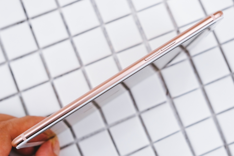 阿湯所拍攝的這一款顏色為香檳色,另外還有推出紅色與黑色的版本,背面採用金屬材質,邊緣採用圓弧設計,手感相當不錯。