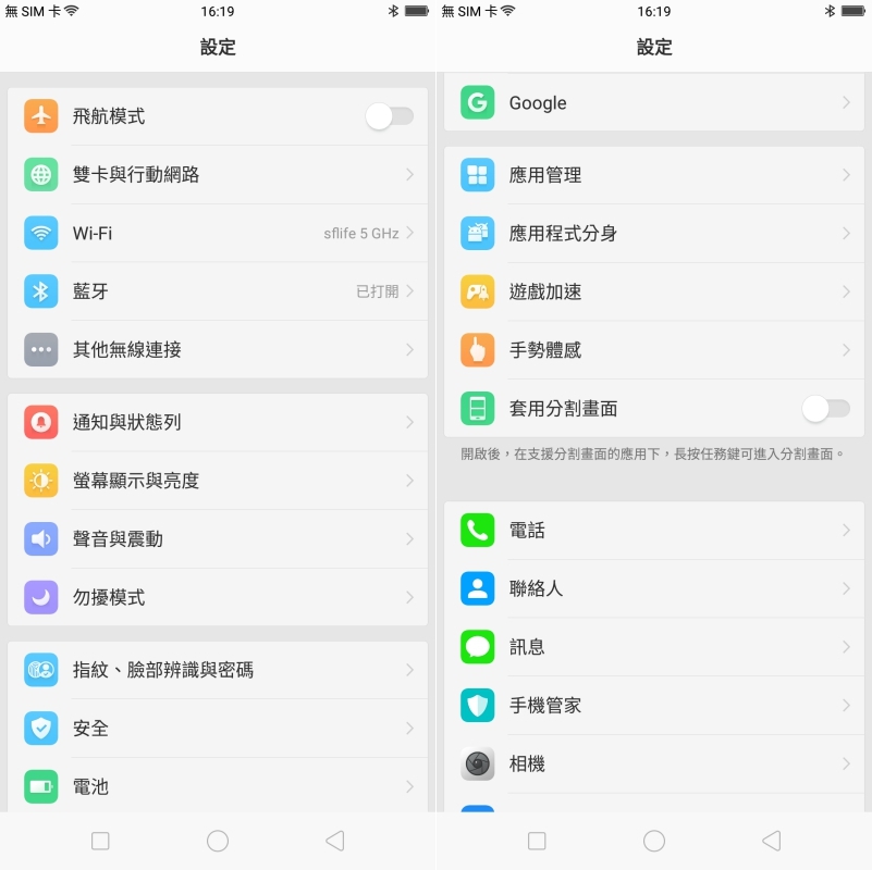 畫面分割,可自己選擇是否要啟用,啟用後只要長按任務鍵就可以選擇分割畫面的應用程式了。
