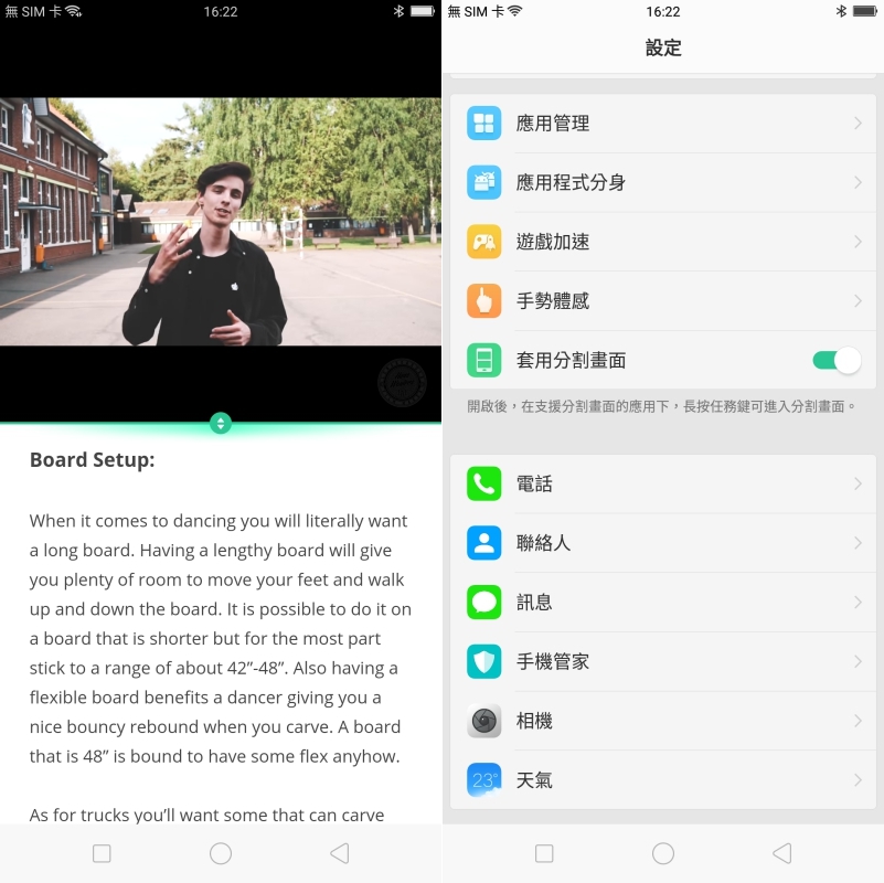 像是邊看影片邊查資料真的很方便,阿湯最近都在學長板滑板,就非常需要分開查看。