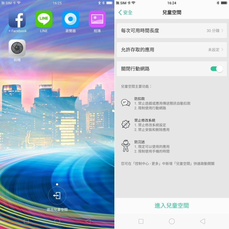 家中的小孩如果擔心他們手機玩太久,可以啟用兒童空間給他們,一來可以限制使用的應用程式,二來可以限制使用時間,避免年齡太小就淪為低頭族啊。