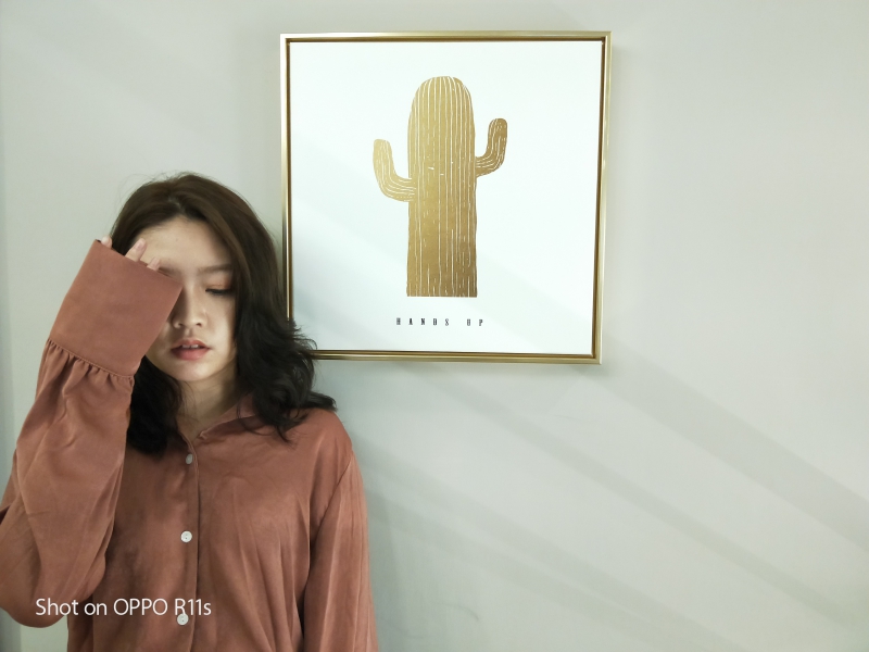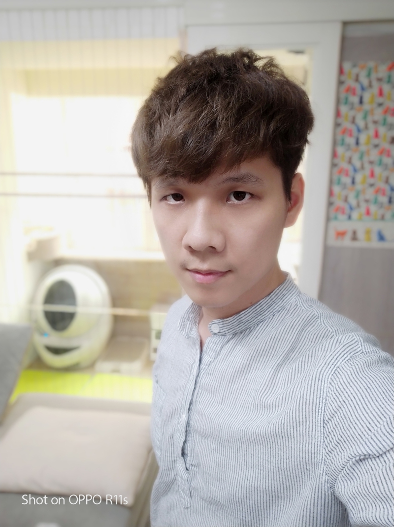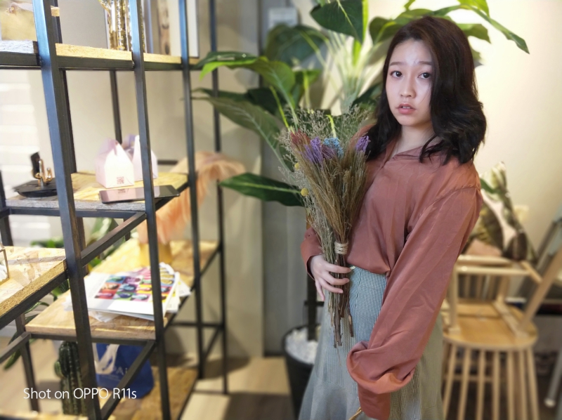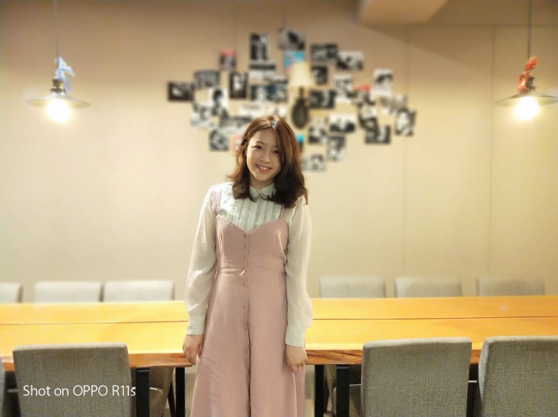 室內的人像模式也相當的考驗畫質,因為大部份的人像模式拍攝是採用遠焦鏡頭所拍攝,光圈一般都不夠大,因此畫質也相對較差一些,但在 OPPO R11s 搭載的是 f1.7 雙超大光圈鏡頭,就算是在室內的昏暗處要拍攝人像也是沒有問題的,仍然保有相當程度的畫質。