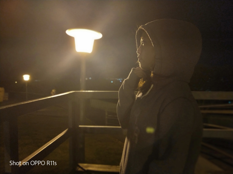 OPPO R11s 這次加入全新的雙主鏡頭會依據環境光源自動切換鏡頭,當環境光源低於亮度 50 流明時就會自動使用 2000 萬像素的鏡頭,並且在拍攝時會自動將四張照片進行合成,提升四倍的感光能力,讓昏暗場景及夜拍的能力大幅增強。