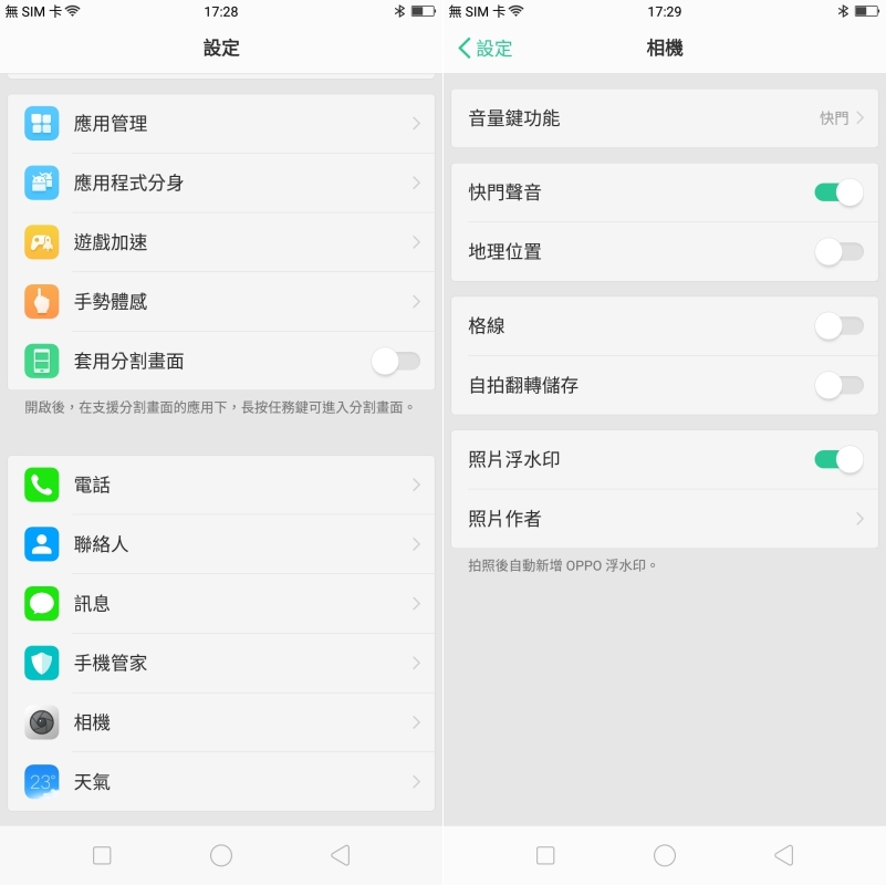 OPPO R11s 搭載 Android 7.1 作業系統以及自家的 ColorOS 3.2 介面系統,介面非常簡單易用,很容易就上手。