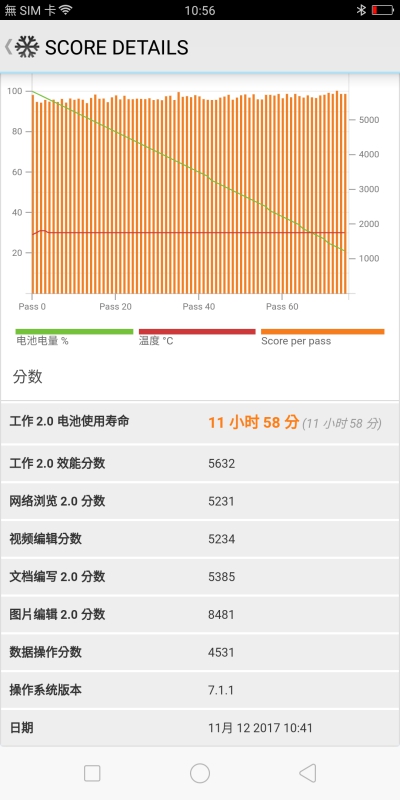 PCMark 續航測試則獲得 11 小時 58 分的成績,相較於 R11 的電量提升了 205mAh,續航力大約又再增加了 1 小時左右。。