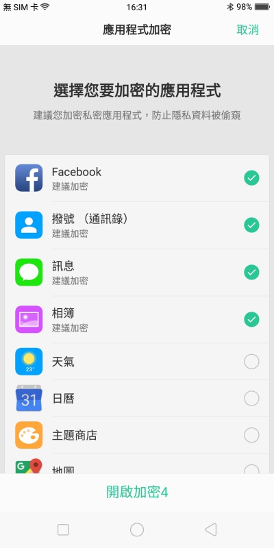對於有隱私的 APP 也可以設定加密,避免他人隨意查看。