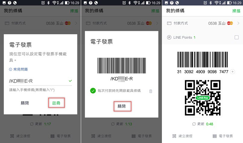 這篇,註冊完勾選「每次付款時先開啟載具條碼」,之後結帳時,再請店員掃這個條碼就 OK 了。