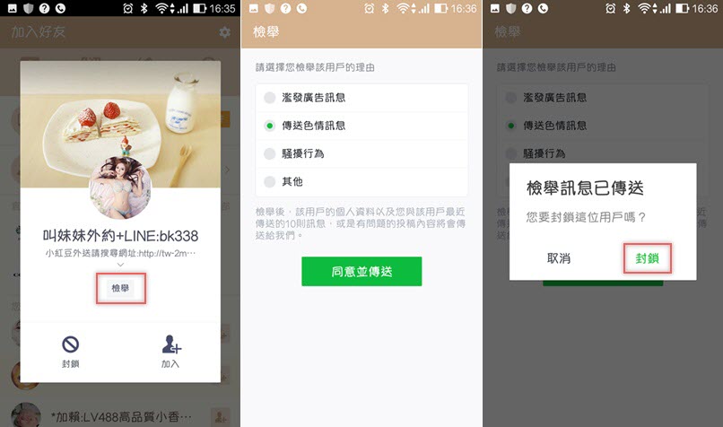 再來就是阿湯覺得一定要用的功能,相信大家在加入好友的頁面一定有一堆「你可能認識的人」,但都是一些叫妹妹、賣東西、汽車貸款…現在點進去按「檢舉」,選擇理由例如廣告、色情、騷擾或其他,傳送後再封鎖就不會再看到了(這項 iOS 版也有囉)。
