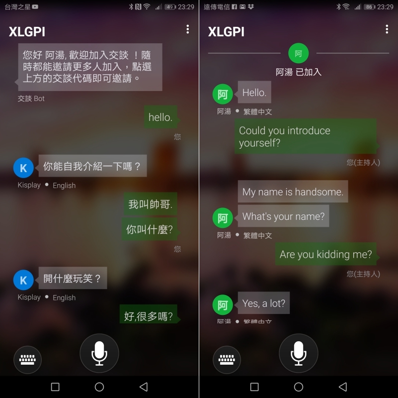 可以看到朋友就算用英文聊天,在我的畫面只會顯示中文,而在他的畫面只會顯示英文,這樣的概念非常的棒,不用再自己手動貼到翻譯框中去了解內容,很自然的進行聊天。