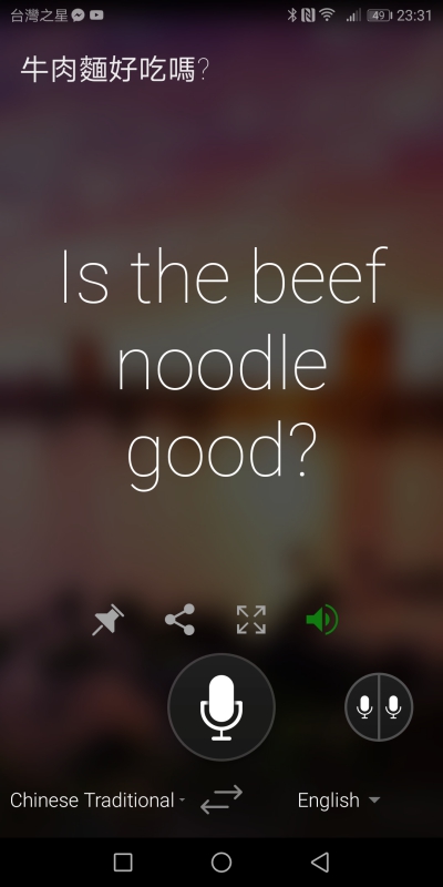 另外針對一般翻譯的功能,除了像這種基本透過語音或文字輸入的單向翻譯之外,我們往下來看一下(介面也設計的很不錯啊)。