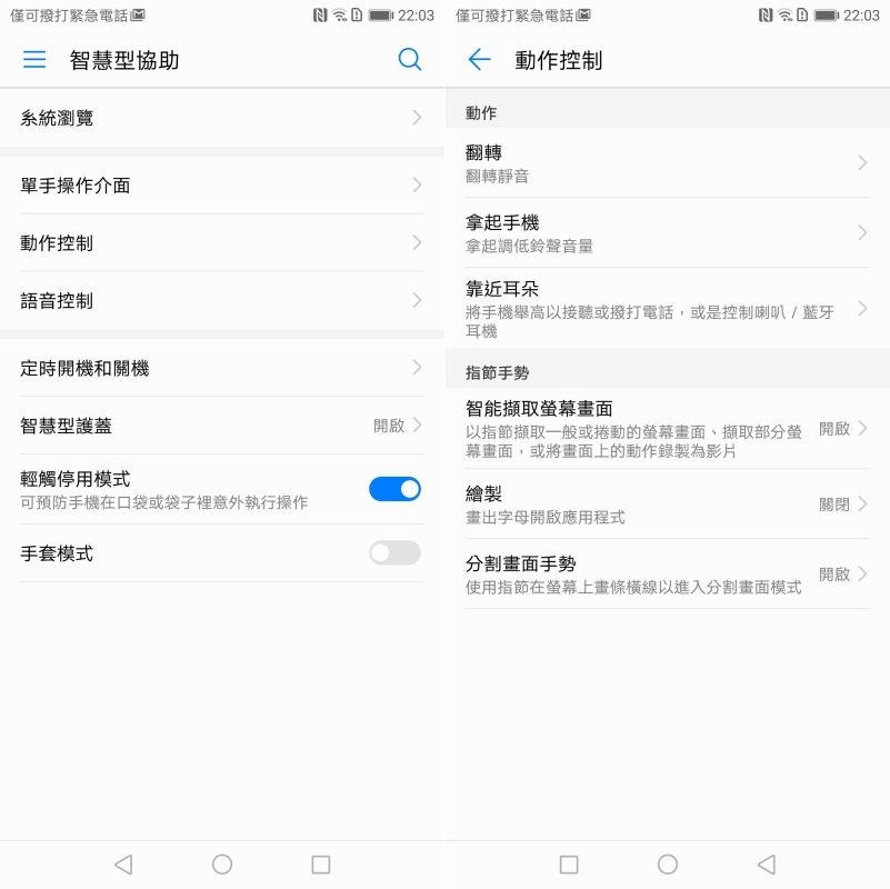 設定中的智慧型協助以及動作控制也有非常實用的控制及手勢功能可以使用。