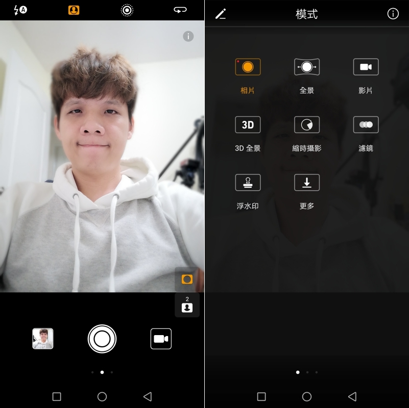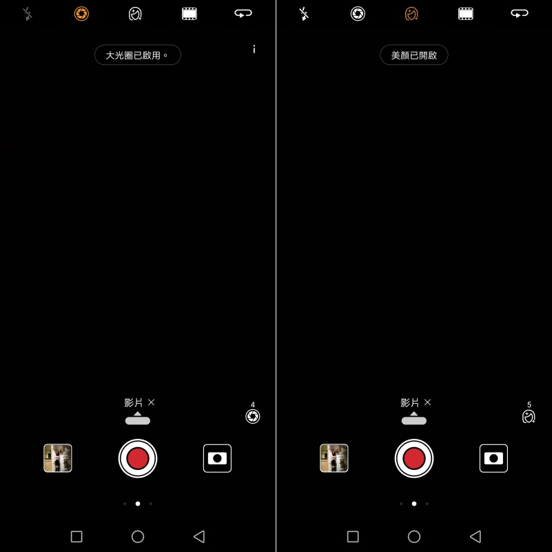 在影片拍攝模式下,同樣支援大光圈模式(好方便)以及美顏模式。