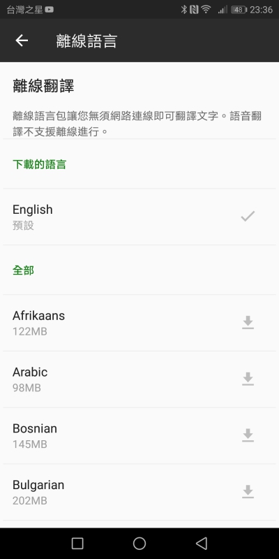 如果你只需要文字翻譯也可以事先下載好離線檔案,就算在沒有網路的情況下也能使用。