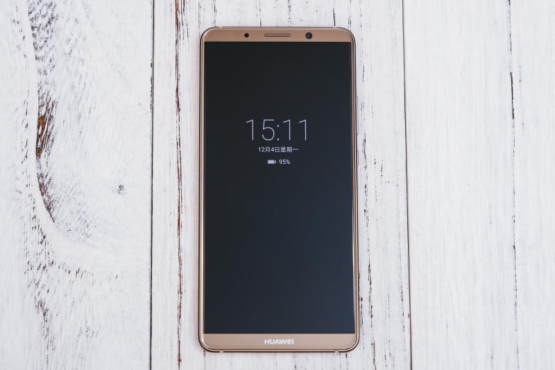 HUAWEI Mate 10 Pro 是 Mate 系列中首次採用全螢幕設計的型號,螢幕比例為 18:9,在螢幕的四邊有些微的弧度設計,可以看到邊框非常的薄,屏占比達到 81.61%。