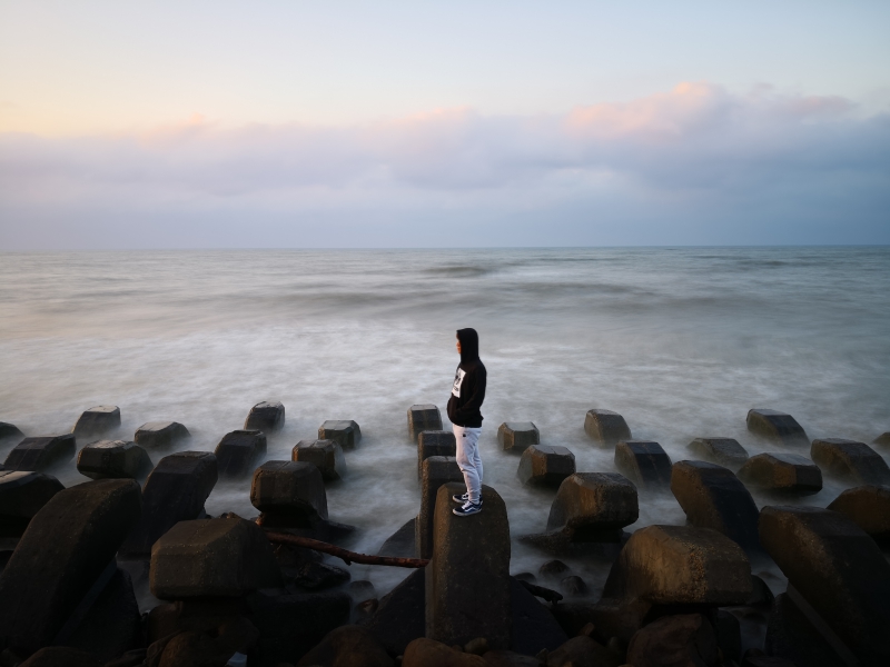 特別像是光影這個功能只要上了腳架,就算白天也能拍出長嚗快門的效果,你看海浪變成霧狀,一般用單眼拍攝的話是需要加上減光鏡才能拍出的效果,但透過光影這個功能就簡單多了。
