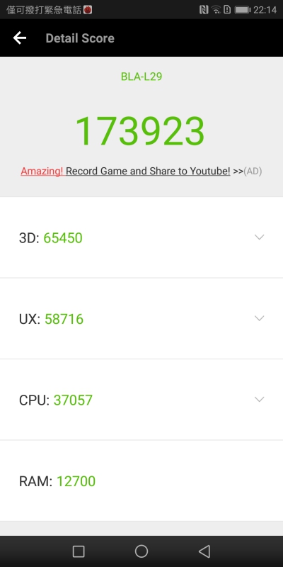 透過安兔兔跑分測試獲得 173,923 分,絕對是旗艦機型該有的水準。