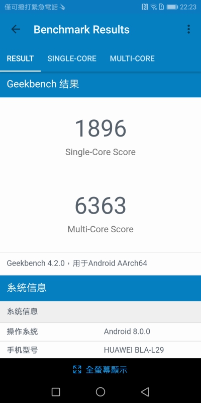 Benchmark 在單核心的測試獲得 1896 分,整體則是 6363。