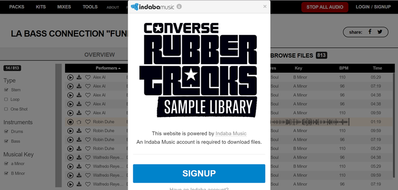 往下看可點擊播放試聽,像這首「LA Bass Connection “Funk Jams”」內共有 813 個檔案,速度 96-110 BPM。