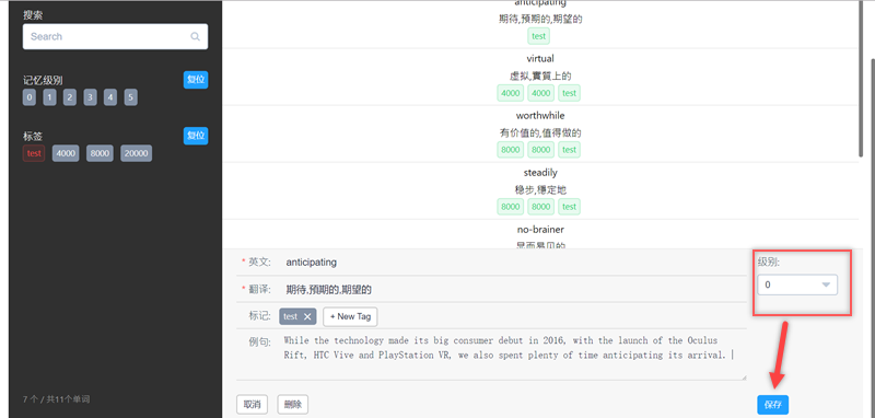 面對密密麻麻的列表可輸入關鍵字搜索,或用記憶級別、標籤篩選。