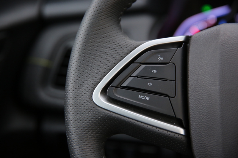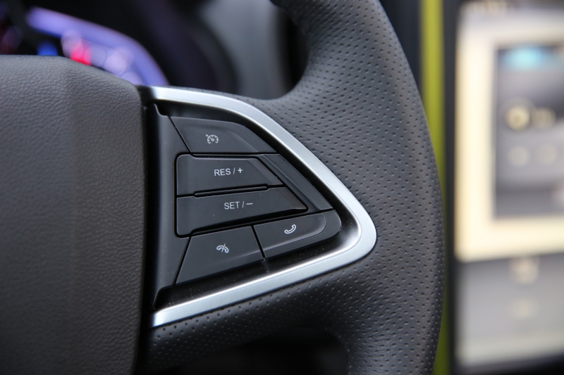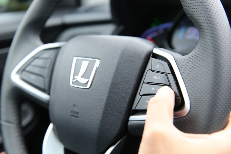 方向盤上有非常實用的功能鍵,包括定速巡航、接聽電話按鍵、音量調整、模式切換等。