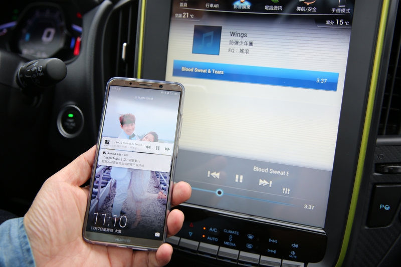 行車中十之八九應該也都會放音樂吧,最直接的方式就是透過藍牙連接直接播放手機中的音樂,而且連接完後也可以在畫面上直接操作上/下首或是暫停等。