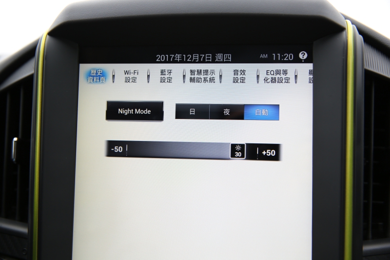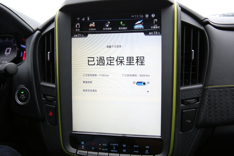 在 12 吋的觸控螢幕最下方還有最基本的冷氣、音量、播放等操作的實體鍵,將這些按鍵與螢幕邊框結合非常的好看。