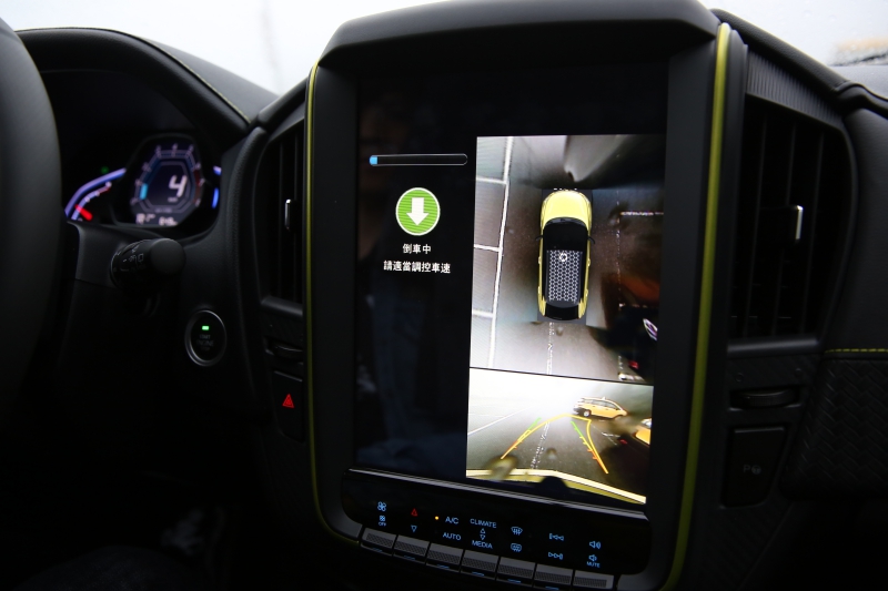 簡單的說,我們可以直接透過螢幕查看到 AR 環車安全影像之外,還能開啟底盤透視影像,清楚的知道目前底盤下方障礙物的狀況。