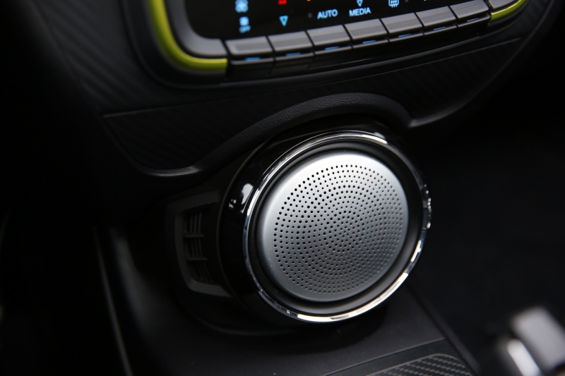 在前座的正中間(螢幕下方),搭配了一顆重低音喇叭,音質有相當的程度的水準。(旗艦 Hi-Fi 版車型以上才有的配備)。