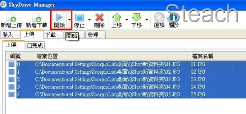 回到上傳頁面,會看到剛加入的檔案,全選起來再按下開始就會開始一一上傳囉