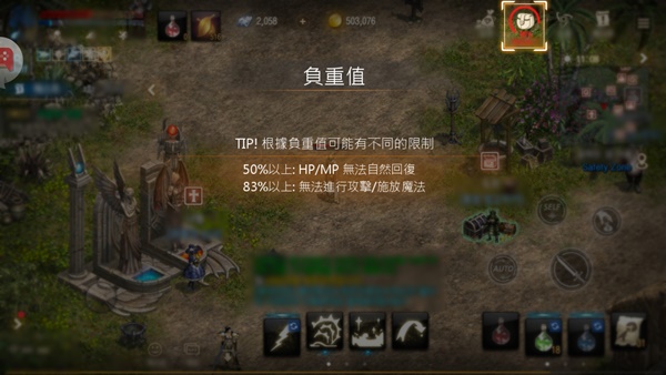 根據負重值的不同會影響 HP/MP 恢復時間,攻擊和施放魔法也會有限制。