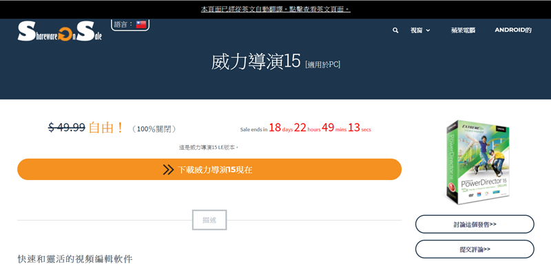 首頁 › 電腦軟體 › 威力導演 PowerDirector 15 LE 又來了,上次沒下載到的快去下載(僅PC 版) 威力導演 PowerDirector 15 LE 又來了,上次沒下載到的快去下載(僅PC 版) 發佈日期:2017/12/12 作者:阿湯 分類:電腦軟體 說來也好笑,上個月發表威力導演「PowerDirector 15 LE」限時下載的文章時,還有十幾天可以用,但時限過後竟然有人才跟阿湯說沒下載到怎麼辦?現在,同樣的網站又開始同樣的活動了,原本阿湯看到還以為是新版出來了那麼快,仔細看跟上個月一樣是 15 LE 版,算是給沒下載到的朋友再一次機會吧,如果上次還在猶豫或是下載後刪掉又後悔的朋友,這次一定要把握時機哦。 取得威力導演 PowerDirector 15 LE 版: 活動網址:請點我 這次連到網頁直接就跳繁體中文版,步驟都相同,點中間橘色那條。 也是要輸入資料,下面選擇系統版本的地方阿湯也很疑惑,明明一直都沒有提供 Mac 版,那在填的時候勾選 Mac 好像也沒什麼意義? 提交後自動下載,安裝程序完成再輸入密鑰即可啟動,如果沒下載過可參考阿湯之前的文章,基本上都很好操作的。