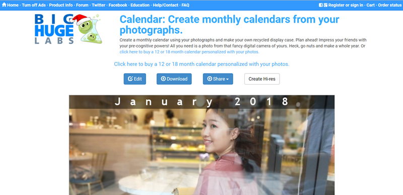 首頁 › 線上工具/服務 › 2018 年月曆自己做,上傳相片線上快速產出,你也可以成為月份明星 2018 年月曆自己做,上傳相片線上快速產出,你也可以成為月份明星 發佈日期:2017/12/17 作者:阿湯 分類:線上工具/服務 這兩個月看到不少月曆、桌曆的宣傳,像是國內外都有消防猛男、空姐系列,有的大學也會用校園美女來製作內容,阿湯是每年都有贊助流浪貓換桌曆和手冊,雖然不太會用到(因為捨不得寫),如果你也想用自己的相片做月曆,可以使用 BigHugeLabs 這個網站中的「Calendar」工具,上傳自己的相片後再選擇尺寸、年份和月份,就可以製作成品再免費下載,想當幾月 Model 都沒問題。 Calendar 使用介紹: 上傳檔案,也可從 Flickr、IG、Facebook 匯入,選擇要使用的是照片的左、右還是中間段,尺寸有 8.5*11、8*10、CD 盒大小,再來選擇年份,2016 - 2019 年所有月份都可一一製作,習慣星期一擺在開頭也能勾選。 一秒製作完成,可再次編輯、下載或分享到 Flickr、Facebook。 下載後就是這樣的 JPEG 檔,簡單又好看,用電腦螢幕看很清晰但如果要印出來可能就要更大的檔案,必須使用網站的付費方案才能取得。 Calendar 相關資訊: 網站:請點我