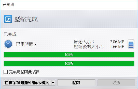 一秒完成,可選擇關閉視窗或前往查看,跟線上版不同的是可一次處理多個檔案,不用一個個分別開啟下載。