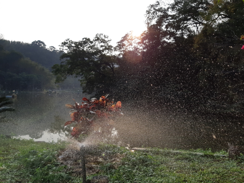 當然手機買來不是只用在自拍的,阿湯往下也提供一些透過背後主鏡頭所拍攝的照片給大家參考,這張剛好是在快日落時阿湯對著灑水器拍攝的(防水就是任性),我很喜歡這種水珠瞬間的凝結感,有種萬物都靜止了的感覺(電影看太多啊)。