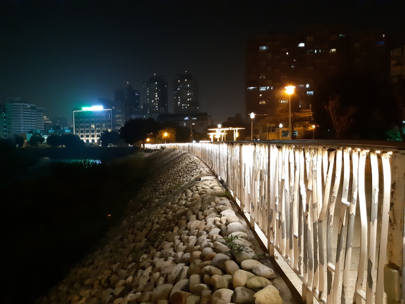 夜間戶外拍攝的成像同樣放大到 100% 擷取部份畫面來檢視,以手機拍攝的照片這樣的噪點已經相當低。