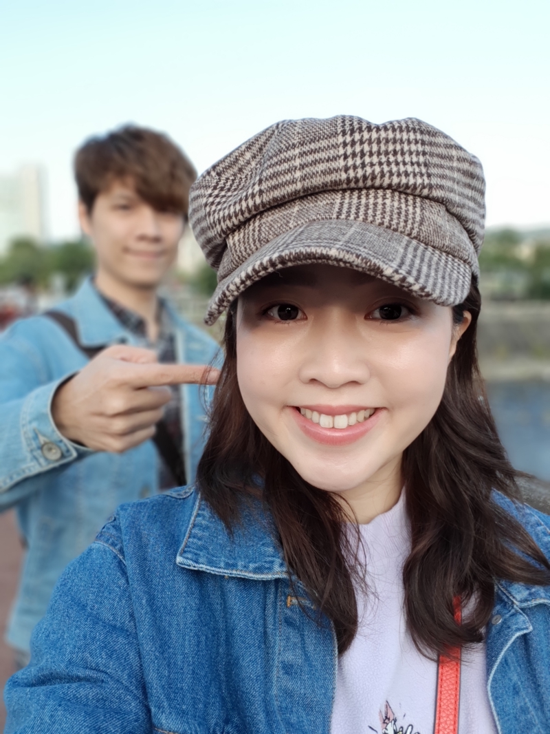 雙人合照也能啟用景深效果,不過提醒大家,在雙人拍攝下,如果一前一後的話,當然還是會以第一主體做為保留,就算是用單眼的自然景深也是如此,所以建議一定要二人平行哦。