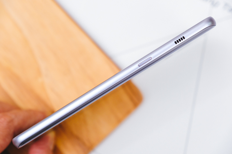 側邊為喇叭孔以及電源鍵,將喇叭孔設計在側邊,這麼一來當橫向模式下要看影片、玩遊戲也就不會被手遮擋到了。