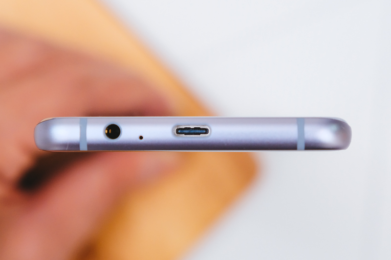 底部為 3.5mm 耳麥孔、麥克風收音孔,並採用 USB Type-C 連接埠。