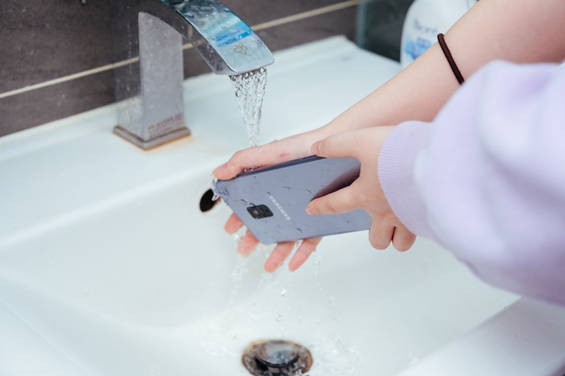 具有防水對於生活上使用真的很方便,手機髒了就直接沖洗。