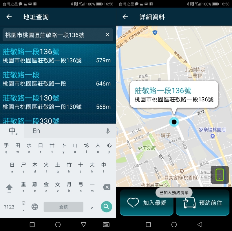 透過手機就可以先將地址輸入後找好再加入預約清單,如果是要旅遊要去很多地點,也可以先加入到我的最愛方便使用。