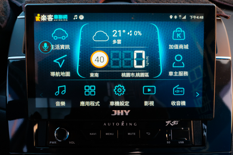 下方除了有些快速鍵可以使用外,也支援外接 microSD 卡或隨身碟讀取音樂或影片來播放,阿湯之前就想安裝的其中一個原因是介面做的蠻漂亮的,覺得很多車機的介面都好醜或著都太功能取向,我還是希望面板看起來美觀一些,他們的介面就做的很有質感。