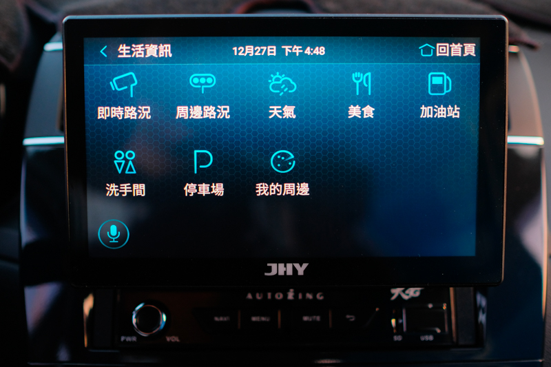 在生活資訊中整合了非常多開車時需要用到的功能,像是周邊路況、天氣、美食、加油站、停車場等,最重要的就是「洗手間」,想要上廁所時一查就知道要往哪去,不用再瞎找了。