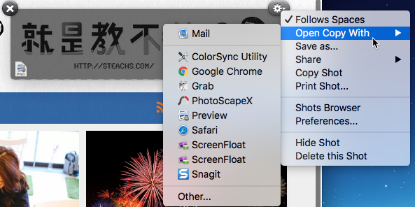 Snipaste - 截圖+貼圖一次完成,還有取色器、歷史紀錄功能,支援多螢幕」這篇,許多人表示很受用,後來有網友分享另一款類似的軟體給阿湯「ScreenFloat for Mac」,看名字就知道是設計給 Mac 使用的,不只具備截圖完直接貼圖的功能,相較之下速度更快,而且分享到其他程式也很方便,當然跟系統介面的差異也有關係,來看一下怎麼操作吧。